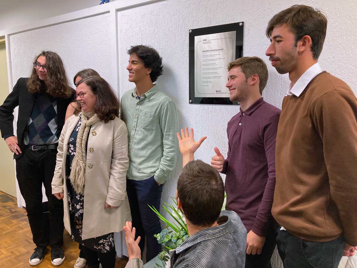 Fotos do dia da inauguração das novas instalações do CBD, em 29 setembro de 2022. No vídeo, a professora Vânia Mara Lima mostra como ficou o departamento depois da reforma e revitalização.